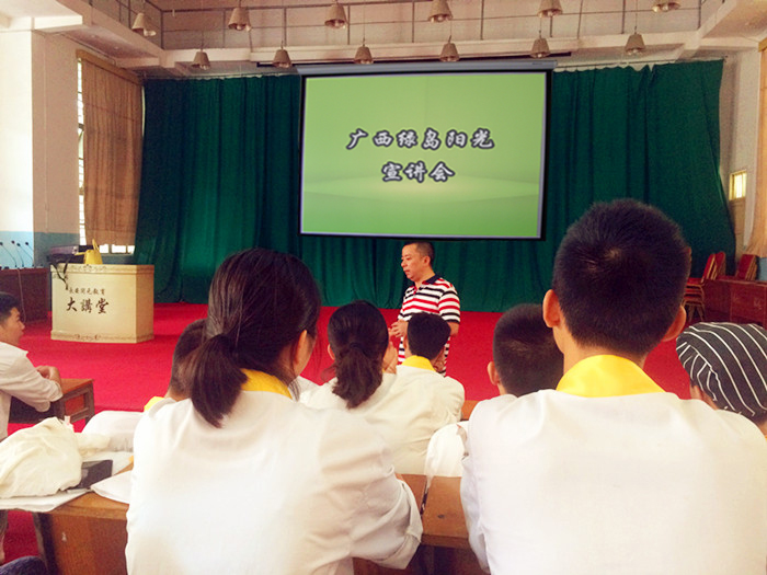 7月7日上午,广西著名餐饮公司广西绿岛阳光餐饮投资管理有限公司来到我校进行招聘,据绿岛阳光餐饮公司负责人介绍,本次来校招聘是为了进行储备人才,为年内开新店做好准备,预计招聘40人。本次招聘绿岛阳光向同学们