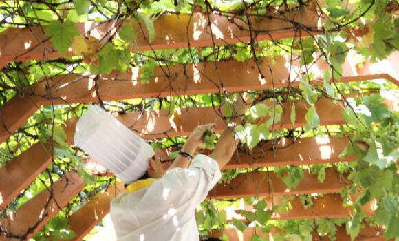 7月8日下午,我校的部分师生共同采摘校园内种植的葡萄,共同感受收获的喜悦。 师生共同采摘 作为传统,学校在葡萄成熟时统一采摘送给同学。旁边既没有禁止偷摘果子的提示语,也没有对果树采取保护措施。据了解,这个学期