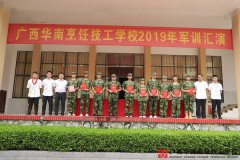 近日,广西华南烹饪技工学校2019年秋季新生军训汇报表演在操场上圆满结束。同学们精神抖擞、队伍整齐、动作规范,以饱满的热情和严谨的纪律完成了这一场震撼人心的军训汇演。 在学生会主席文体部部长滚向前的主持下