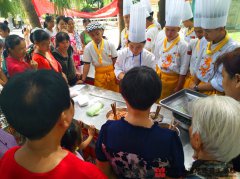 8月18日上午,广西华南烹饪技工学校携手南宁电视台《新闻社区》栏目,一同来到南宁市新竹社区,为社区的居民展示烹饪技法。 活动刚刚开始社区居民就围绕在展台前 今天的主题是教社区居民如何制作花式饺子,饺子做为